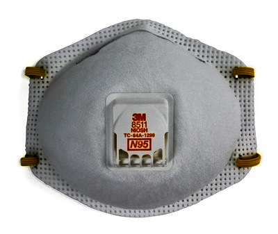 3M Particulate Respirator 8511, N95 is a disposable particulate respirator that is designed to help provide reliable respiratory protection of at least 95 percent filtration efficiency against certain non-oil based particles. The respirator is designed for use for particles such as those from grinding, sanding, sweeping, sawing, bagging, or other dusty operations. This respirator can also help reduce inhalation exposures to certain airborne biological particles (examples: mold, Bacillus anthracis, Mycobacterium tuberculosis), but cannot eliminate the risk of contracting infection, illness, or disease. Soft inner material provides added comfort while the cup shape design makes the respirator spacious and durable. Braided headbands and an adjustable M-noseclip are designed to help enhance user comfort and increase wearability. The respirator incorporates 3M™s proprietary technology with advanced electrostatically charged microfiber filter media designed for ease of breathing. This respirator is compatible with a variety of protective eyewear and hearing protection.