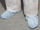 These sanitary shoe covers feature a 2-1/2" wide tacky strip on the sole to keep you from slipping and sliding. Made of strong, abrasion-resistant, spunbond polypropylene. The full elastic top stretches so you can slip them on or off easily. The Universal size fits shoe size 5-12 and the X-Large size fits sizes 5-15.
