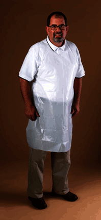 WBP is a unique, space-age technology, cloth-like fabric that is amazingly comfortable to wear. Ideal for non-toxic liquids and spray hazards. Provides liquid-proof barrier protection with three layers of bacteria filtration. White Apron features convenient neck loop with self-material ties. Size: 28" x 36".