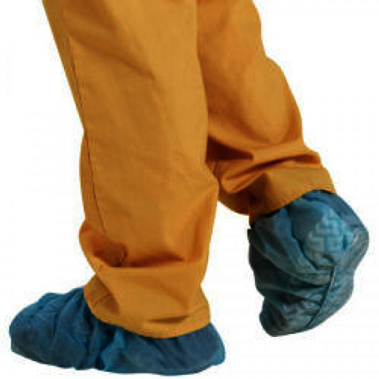 High Five Spunbond Non-Slip Polypropylene Shoe Covers with Tread, Blue, Bulk or Dispenser Pack, High Five, AS6XX-MF, Spunbond Polypropylene 2 1/2" wide tacky strip on sole Full elastic top for easy on and off Blue Sold in bulk or dispenser