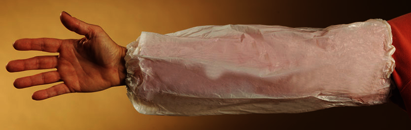 These Polyethylene Sleeves provide economical protection from liquid splashes, dirt and grime. The embossed pattern helps resist cling and the elastic ends keep sleeve in place while blocking liquid and dust. Great for food service applications or light industrial work sites.