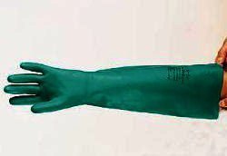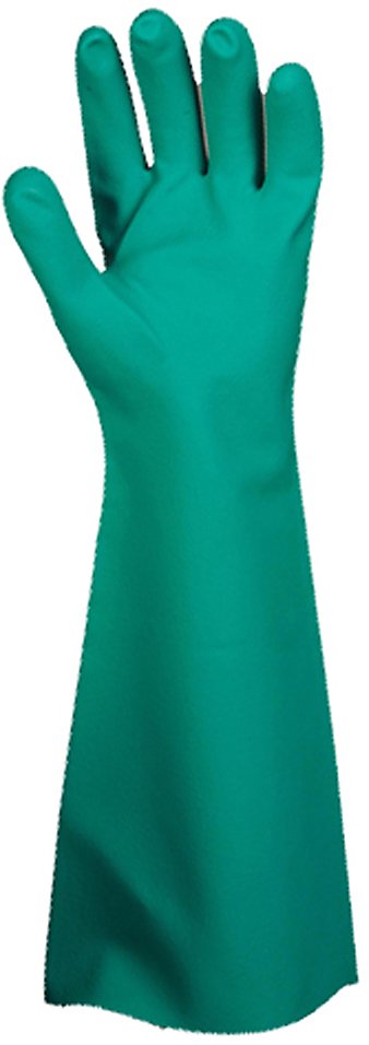 This glove combines shoulder-length protection with a great feel. Provides chemical, abrasion and puncture resistance. A cotton liner ensures a comfortable fit. The rough grip makes oily and greasy cleanup jobs a snap. 26" length. Sold by the pair.