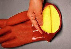 Your hands stay warm and cozy with the sheep-like lining, and the PVC material remains flexible even in cold conditions. You can actually pick up a quarter with this PVC Glove. Rough finish, improves grip in wet environments. Thick acrylic lining. 11" length.