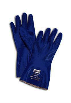 Durable nitrile gloves provide excellent protection for handling most chemicals, solvents, acids and caustics, as well as animal fats. Nitrile resists snags, punctures, abrasions and cuts. A non-slip grip makes work easier. Component materials comply with FDA regulations for food contact. 15 mil gloves are available in either Unlined or Flock-Lined styles.