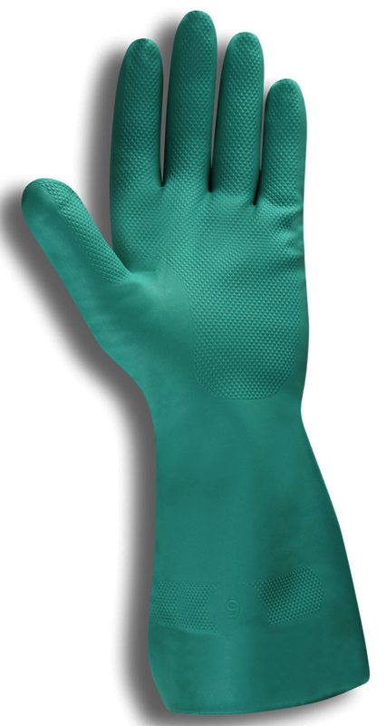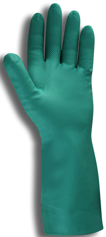 Cordova 4630 Unsupported Nitrile Gloves, 13", Flock-Lined, Standard Grade. 15mil, Green, Dozen, Cordova Safety Products, 4630, Nitrile Chemical-resistant Cotton flock-lined Green Embossed grip Standard Grade 13" cuff Safe