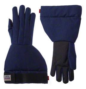Cryo-GlovesŪ are multiple-layered insulated gloves designed to protect hands in extremely cold environments. The breathable and lightweight Cryo-GlovesŪ have a stay-dry inner lining which provides comfort when working for extended periods of time. Gloves are water resistant and are intended for use when working with closed cryogenic systems where there is no risk of exposure to cryogenic fluids.Note: Not intended for immersion in liquid nitrogen or other cryogenic liquids.