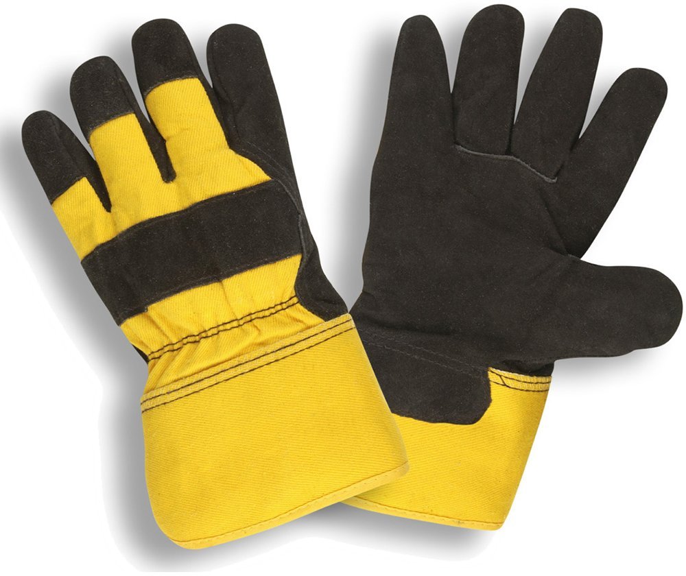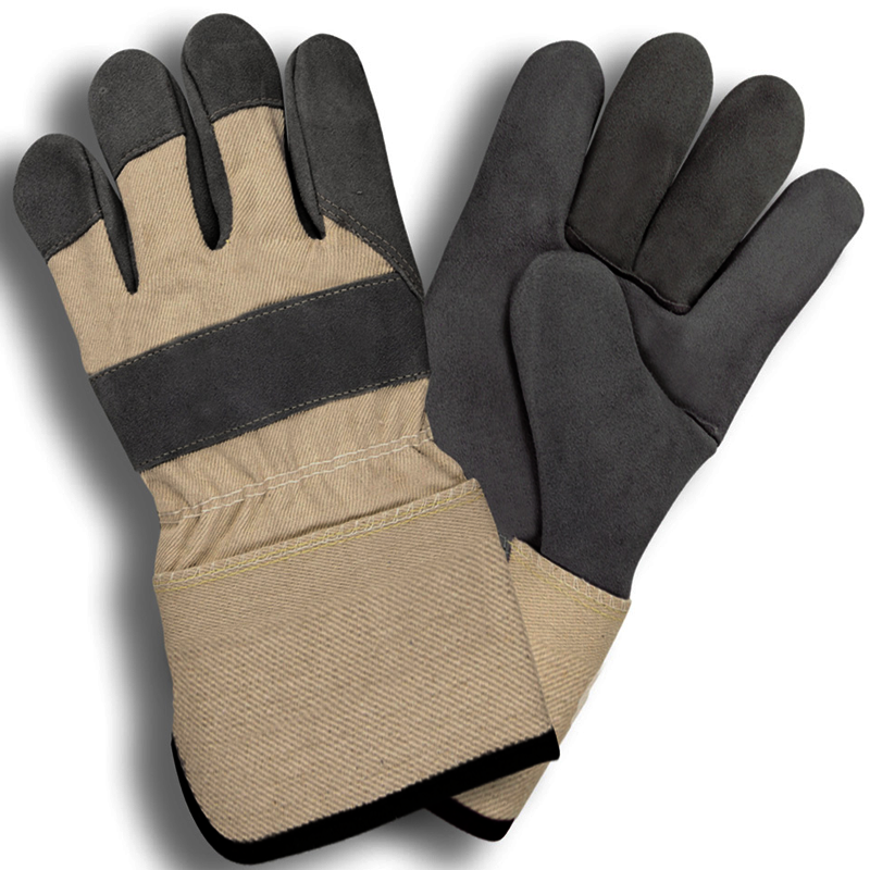 Keep safe and warm at cold jobs with these Split Cowhide Leather Palm gloves with Thinsulate Lining and waterproof insert. Features a Gunn Pattern with rubberized safety cuffs