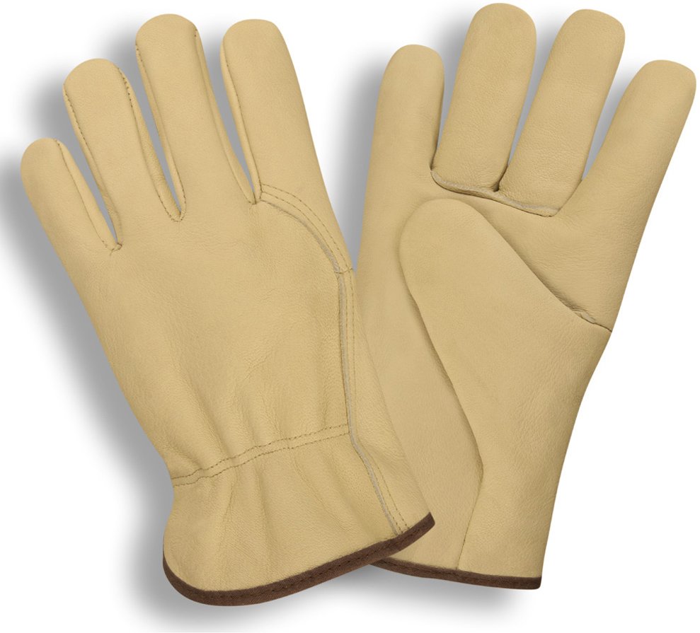 These standard cowhide drivers gloves provide added protection with the wraparound forefinger feature. These unlined gloves include wing thumb and shirred elastic back for an ideal fit