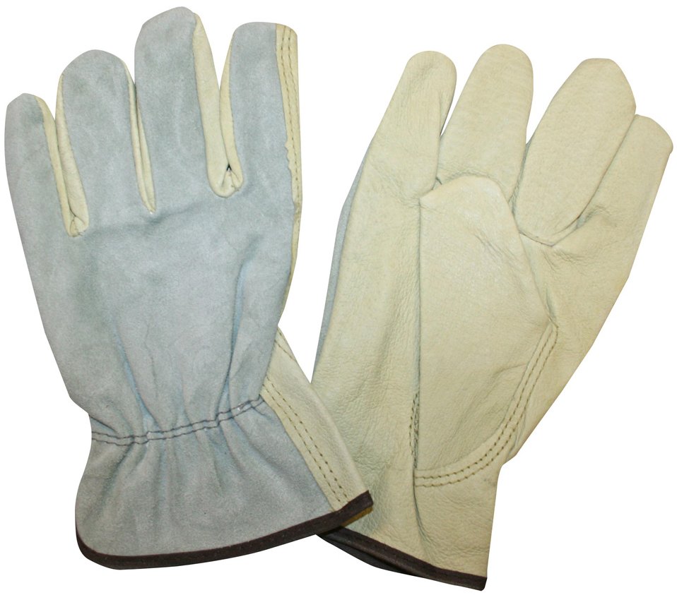 Stamdard grain cowhide gloves with keystone thumb provide more flexibility and reduced hand fatigue. Ideal for forklift driving, material handling or any tough job. Unlined, with shirred elastic back and hemmed cuff.