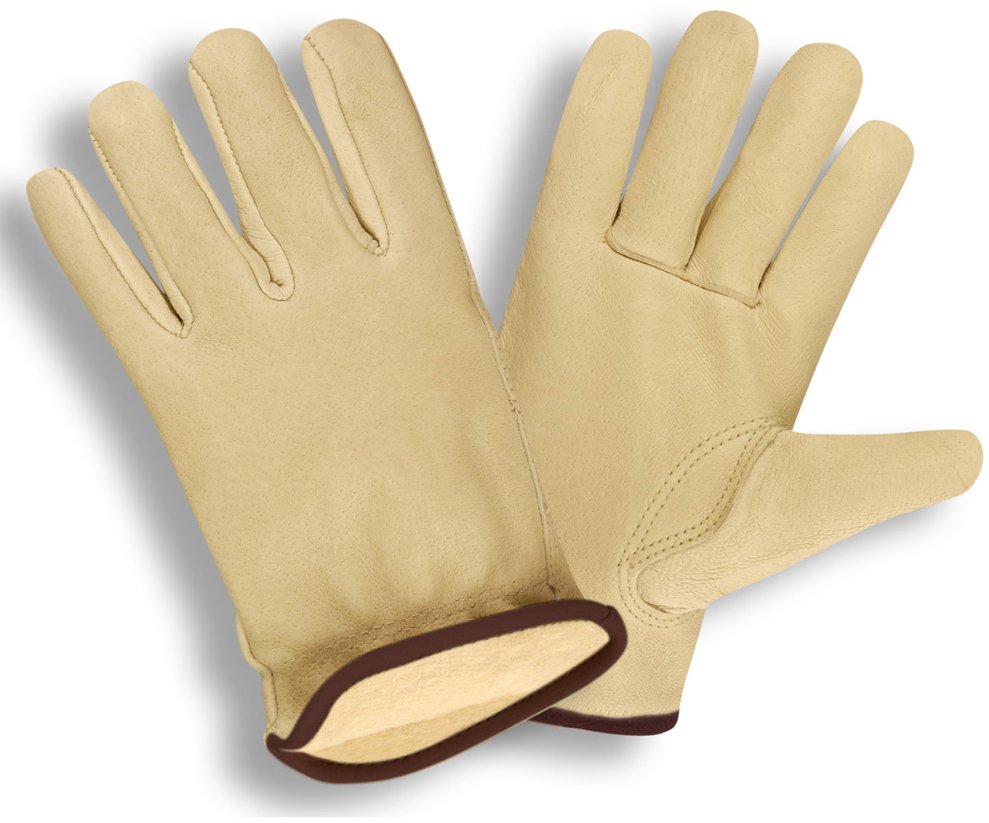 Leather Palm Gloves provide ideal protection with applications such as farm and construction work, metal work, metal fabrication and more. These pigskin gloves are ideal for cold environments. Includes a Thinsulate lining for warmth and Rubberized Safety Cuff for protection.