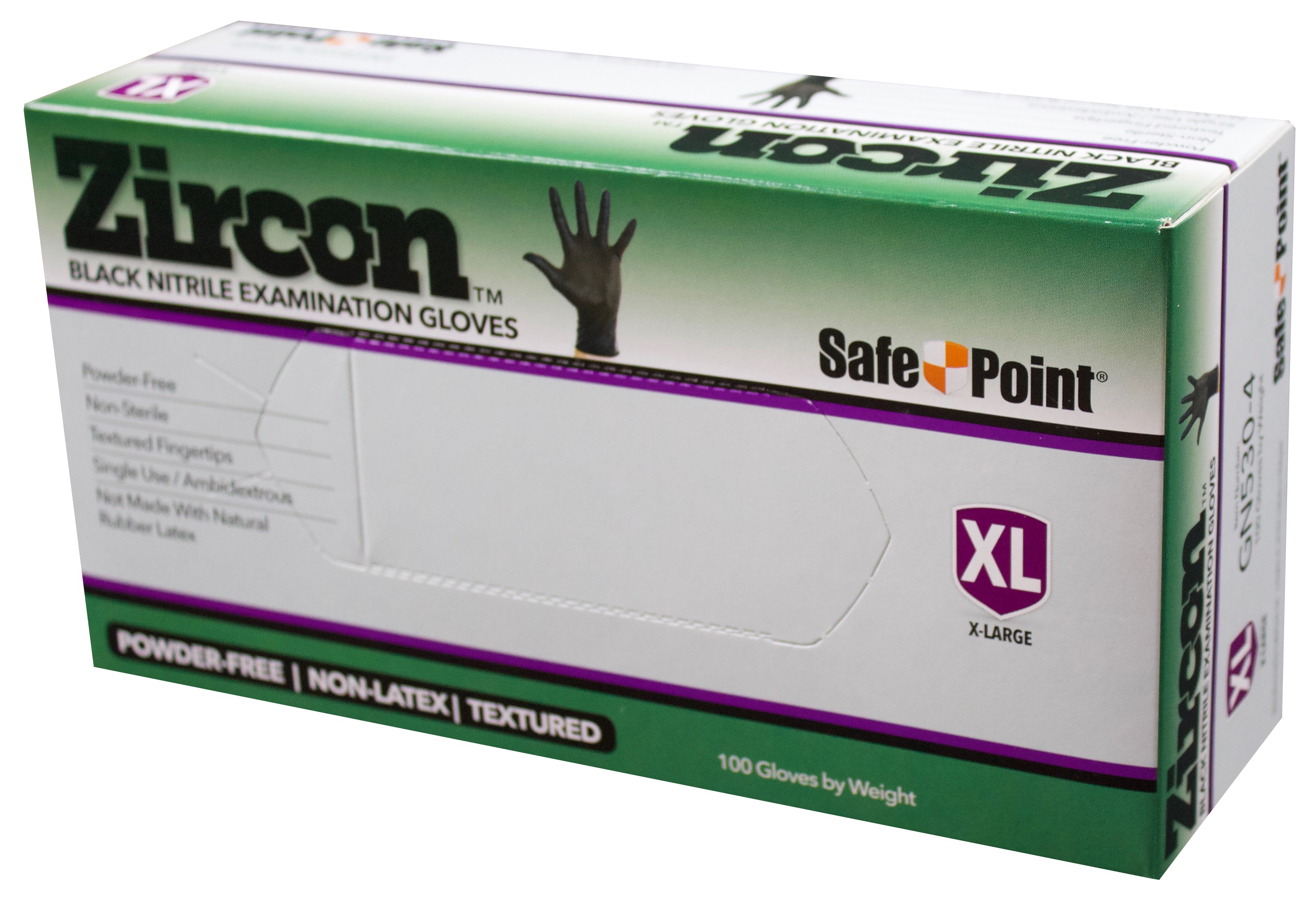 SafePoint GN530 Zircon Disposable Black Nitrile Gloves, 5.1 mil (Finger), Powder Free - 100/Box, 10 Boxes/Case, SafePoint, GROUP-GN530, Nitrile Powder-Free Non-Sterile Textured Fingertips Thickness: 5.1 mil (Finger) Te