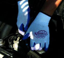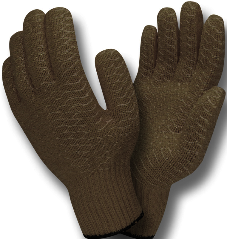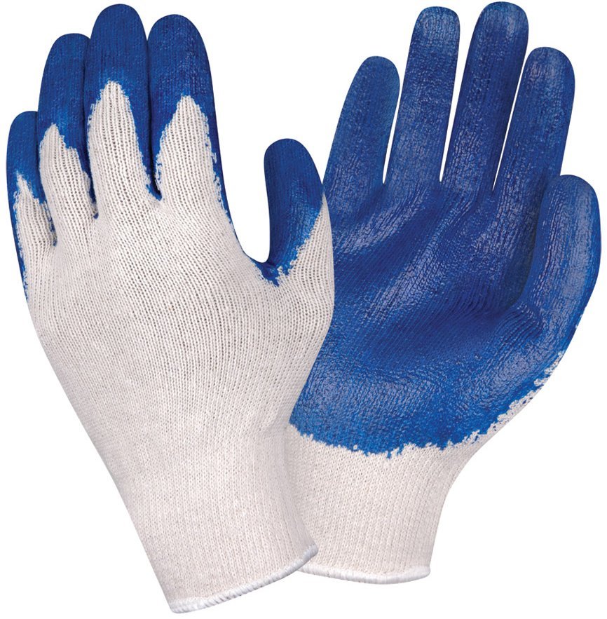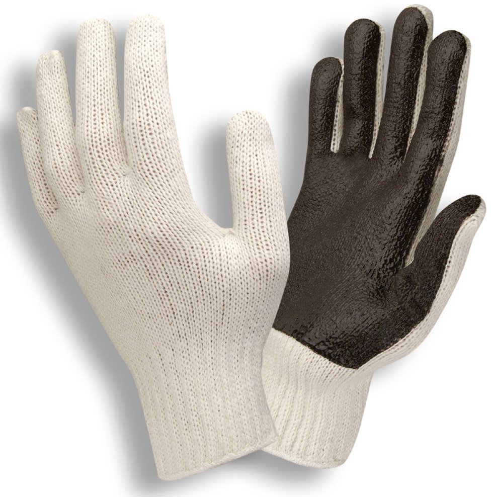 General purpose glove with great grip. Ergonomically designed to feel like a custom fit. 100% cotton string knit, with palm dipped in a natural latex. Washable. 10" length, knit-wrist.