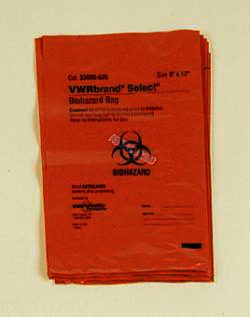 Autoclavable bags feature one long flap for ease in opening. These bright orange-red bags are printed with the biohazard symbol and a sterilization patch. When picking up individual pieces of waste, the bag may be turned inside out, over the hand, then turned right side out with waste safely inside the bag. Measures 8.5 x 11 (22 x 28cm) and is 0.38mm thick.