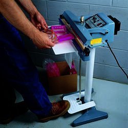 TheFloor Unit Heat Sealer with foot pedal is for heavy-duty high-volume production sealing. It features a hands-free design that increases productivity. Standing 36 (91.5cm) tall, the unit creates a tamper-evident seal on polyethylene and polypropylene bags up to 10mm thick. All sealers feature an on/off light for added safety and efficiency. SeeOpen-Ended Poly Bags for the perfect seal. UL and CE approved.