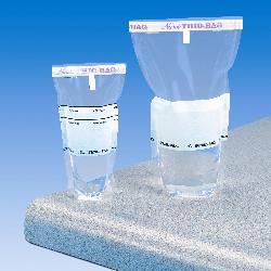 The sterile Thio-Bag® is made to collect and dechlorinate water and wastewater samples, for bacteriological examination. Each 4-oz (118mL) bag contains one nontoxic, nonnutrative pill impregnated with 10mg sodium thiosulfate and has both 4-oz and 100mL fill lines. The 18-oz (532mL) bag contains three 10mg sodium thiosulfate pills and has a 300mL fill line. Ideal for sampling potable water, swimming pool water, effluents, and industrial wastes.