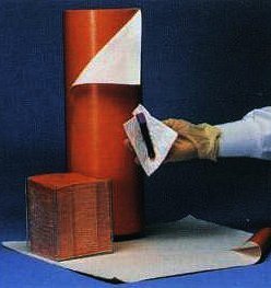 Disposable Labmat® Bench and Drawer Liner simplifies cleanup chores and safeguards work surfaces from stains, spills and wear. The flexible polyethylene film backing is nonskid and prevents soak-through of most solutions. The highly absorbent upper surface traps water, dyes, corrosive chemicals and radioactive solutions. The entire sheet can be rolled up and discarded after contamination.