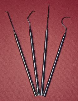 Essential set of four teasing and dissecting probes. Includes medium point, fine point, curved and angled.