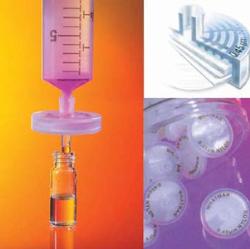 Designed to sterilize or clarify most aggressive solvent, acid and base samples, the Cameo Teflon Syringe Filter is ideal for HPLC solvent and gas chromatography filtration, and for filtering and degassing solvents before analysis. The 30GF (30mm) syringe filter contains Cameo's naturally hydrophobic PTFE membrane filter, which will not release any extractables into the sample. The 30GF also contains a 1.0 micron glass fiber prefilter, which in combination with the PTFE membrane filter, provides high throughputs and quick flow rates for samples with a high particulate load. Encased in a pure polypropylene housing, the 30GF is fully autoclavable. Each unit is labeled with pore size and filter type for quick identification, and all are tested to verify the integrity of the filter and the housing. Holdup volume of<60µL and sample volume of<180mL.