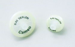 Designed to filter most aggressive solvents, acids and base samples, the Cameo F syringe filter is also recommended for HPLC solvent and gas chromatography filtration, as well as filtering and degassing solvents before analysis. MSI® Osmonic™s naturally hydrophobic Teflon (PTFE) is the membrane filter in the Cameo F. It is autoclavable and will not release extractables into the sample. The Teflon Syringe Filter is offered in two sizes: 17mm and 30mm. Both are made with a pure polypropylene housing which is also autoclavable. Each unit is individually labeled with filter type and pore size, and each is tested to verify the integrity of the filter and the housing. Maximum operating temperature of 356°F (180°C) and maximum operating pressure of 130psi. Nonsterile.