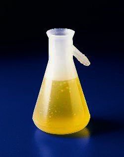 Liquid levels are easily visible through the translucent, chemically resistant polypropylene, which is steam autoclavable at 250F (121C). The side-arm is molded with a 45 downward angle to avoid tipping, and accepts tubing from 3/8 to 1/2 ID (9.5 to 12.7mm).