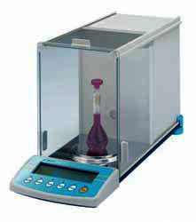 A versatile Analytical Balance which can be used for weighing (including animal weighing), percentage weighing, check weighing, parts counting, density determination, averaging, statistics, formulation and as a filling guide. The large weighing pan and chamber features a glass shield with three-door access. Rugged die cast aluminum housing. The large LCD display includes a backlight and function icons for easy reading. Other features include a motorized internal calibration weight, automatic temperature compensation, selectable automatic calibration due to temperature variations, and date and time. Includes an interface for standard PC keyboard, remote display, or tare and print foot switches. A bi-directional RS-232 interface creates GLP compliant reports and allows for connection to a computer or printer.