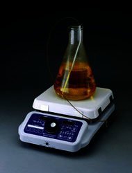 Convenience and safety features include "Top-Is-Hot" warning system (active until unit is below 122°F (50°C), even when the unit is off), temperature and stirring presets that work like a car radio's tuner (eliminating the need for pencil markings of often-repeated procedures), a "walk-away" timer which shuts off stirring and or heating after a preset interval (you can finally leave that digestion to finish on its own), a diode - which indicates if temperature readings are from the heating surface or from the external probe (in solution), and a stirring "pause" button - which allows quick vessel changeover.