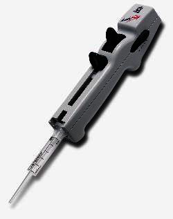 The Labpette R provides accurate repetitive pipetting in a slender, ergonomically sound design. Select the proper tip and lock into place, then choose from five volume settings on the adjustment wheel. Dispense as many as 48 steps without refilling the reservoir tip. Samples can be dispensed in intervals as fast as one second without compromising accuracy or reproducibility. Use with Combi-Syringes.