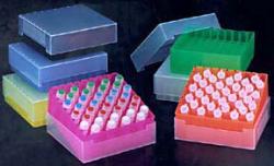 A durable, stackable alternative to cardboardin natural or assorted colors. Bold printed alphanumeric matrix for quick sample identification. Autoclavable. 5-1/4 x 5-1/4 x 1-3/4. Five per pack.