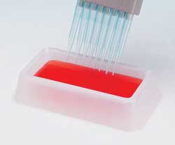 TheEight-Channel Reservoir can be used with either four- or eight-channel pipettes. Each well has a capacity of 10mL.