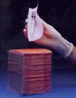 Available premoistened with either 100% pure reagent-grade deionized water or a mixture of reagent-grade 70% isopropyl alcohol and 30% reagent-grade deionized water. Dry wipes are also available. Packaged in a convenient benchtop polyethylene dispensing canister. Each wipe measures 6 x 9" (15 x 23cm).