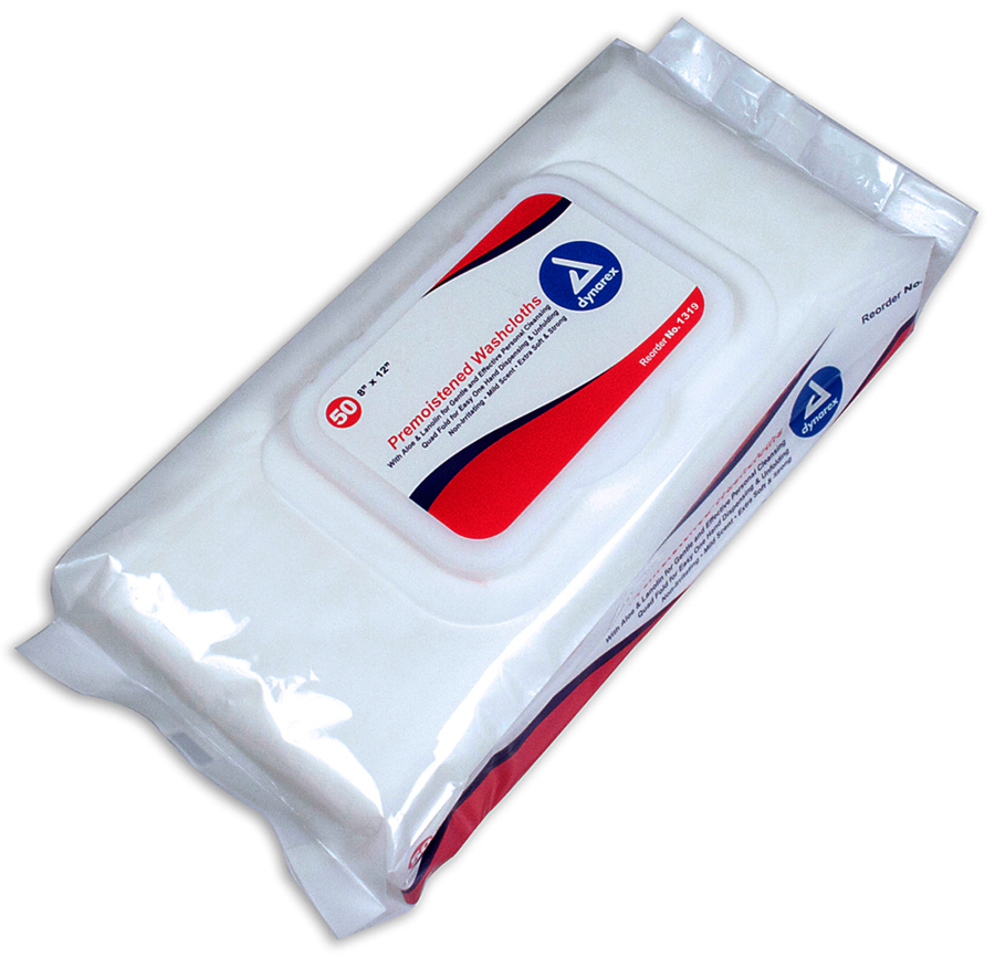 Premoistened Adult Washcloths - 9" x 13" - Tub, 46/Tub, 12 Tubs/cs , Dynarex Corporation, 1314, Personal Cleansing Washcloth (wet wipes) A fresh approach to incontinence and personal care needs Soft, yet durable spunlace material for a soothing g