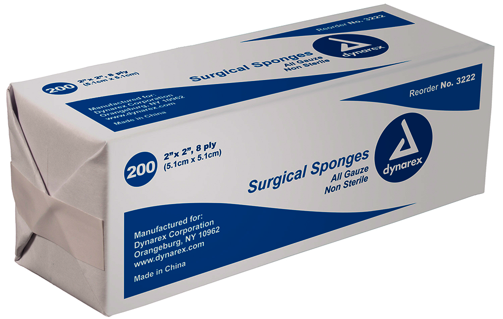 GAUZE SPONGES 2 X 2 NON STERILE, 8 PLY 200/PKG, 25 PKG/CS , Dynarex Corporation, 3222, GAUZE SPONGES 2 X 2 NON STERILE, 8 PLY, GAUZE SPONGES 2 X 2 NON STERILE, 8 PLY 200/PKG, 25 PKG/CS, 92.0000, CS/25PK, , | LabSource.com