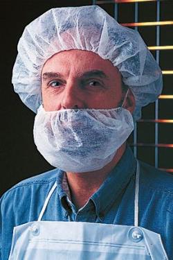 Facial hair is controlled by covering your beard and mustache, while maintaining a clean work environment. Choose from white spunbond polypropylene or white nylon.