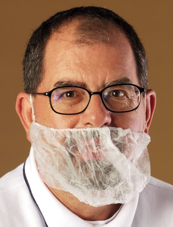 FDA and OSHA standards often require beards to be covered. Made from nonwoven flame-retardant polypropylene, this Beard Cover slips on easily and is secured with an elastic back. White.