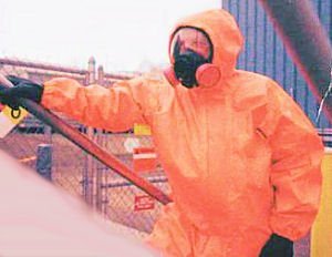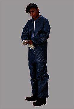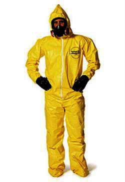 Provides flash fire escape and liquid-chemical splash protection. Combines the chemical protection of Tychem® and thermal protection of Nomex® into a single layer garment. Features taped seams, zipper-front closure, double storm flaps with hook-and-loop closure, elastic wrists and hemmed ankles. Certified to NFPA 1992 and NFPA 2112.