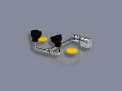 Each Hand-held Drench Hose Spray mounts to a countertop, with its 8™ hose threaded through the mounting and hidden under the countertop. Drench Hose Sprays feature twin spray head assemblies. Spray heads are ABS plastic and include a flow control and pop-off dust covers. A chrome-plated valve stays open when handle is squeezed. Yellow 8™ hose is rated at 250 PSI burst strength. Water supply: 3/8ť IPS (male). Meet ANSI Z358.1-2004 standards as supplements to eyewash and shower products only.