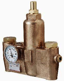 Thermostatic Mixing Valves combine hot and cold water to ensure that emergency eyewashes and showers have a comfortable water temperature. A liquid-filled thermostat allows for accurate temperature control to within ±3°F. Valves are preset at 85°F but can be adjusted between 65°F and 95°F. An easy-to-read dial thermometer clearly displays the temperature. Features include checkstops on inlets, a built-in cold water bypass and a positive shut-off of hot water supply to prevent scalding when cold water supply is lost. The8 gpm size accommodates up to three eyewashes or one eye/face wash. The36 gpm size is for use with one combination eyewash/shower or multiple eyewashes. The67 gpm size can be used with up to two combination eyewash/showers or multiple eyewashes. UPC and CUPC certified, CSA listed.