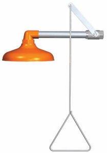 Easy-operating mounted instant shower offers a large 20" diameter spray for complete drenching. Stainless arm and pull rod with a chrome-plated valve. 1" IPS inlet. 30 GPM at 30 PSI. Unit meets ANSI Z358.1 standard as emergency shower (includes ANSI compliant identification sign).