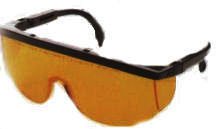 The one-piece polymer lens employed by LGF® Full-View Laser Eyewear has integral molded sideshields, which provide excellent side protection without restricting the view of the wearer. The contoured frame conforms to the forehead. LGF® Full-View Laser Eyewear fits over most prescription eyewear. Includes a safety cord and a convenient storage case. The lens is engraved with wavelength and optical density information which ensures that the wearer has the proper level of protection. OD >5 at 870-1080nm, 7 at 1074nm and 10, 600nm. VLT 60%.