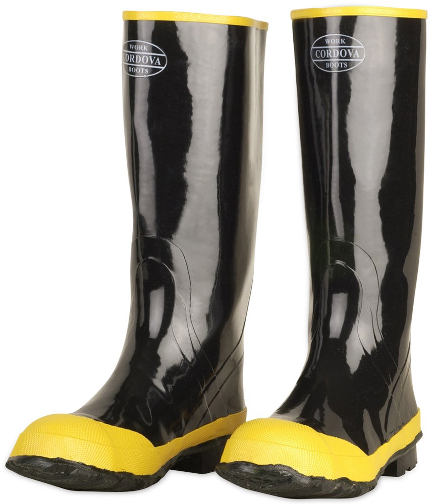 Cordova BST Cotton Lined 16" Rubber Boots, Black Ribbed Soles, Steel Toe and Shank, Cordova Safety Products, BST, Cotton Lined Rubber Boots Black Ribbed Soles Black Uppers 16-Inch Length Steel Toe and Steel Shank Black Ozone Resista