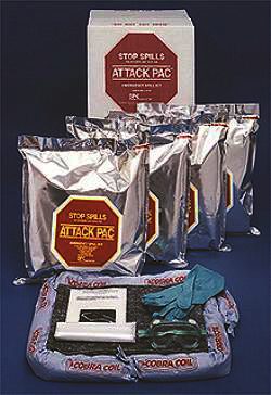 Attack Pac Spill Kits are efficient and space-saving. These single use kits absorb up to 7 gallons. Choose from Oil Only, for oil and petroleum based spills, or Hazwik, for aggressive liquid and hazardous materials spills. Packaged in puncture and UV resistant foil bags. 4 packs per case.