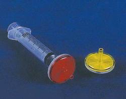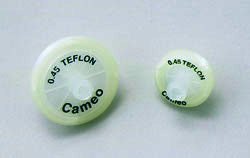 The Cameo 25GAS sterile syringe filter is recommended for sterilizing biological fluids, serum, or media additives, and for filtering probe solutions. Both the 25GAS and the nonsterile 30GA are excellent for the filtration of tissue culture media, and their high throughput characteristics make them a good choice for sterile or nonsterile clarification of even the most viscous proteinaceous solutions. The 25GAS (25mm) and 30GA (30mm) filters contain a 1.0 micron borosilicate glass prefilter and Cameo's Osmonics™ cellulose acetate membrane filter specifically designed to combine maximum sample recovery and high throughput when filtering or sterilizing viscous proteinaceous solutions. The membrane and prefilter are contained in a nonautoclavable acrylic housing(25GAS), or an autoclavable polypropylene housing(30GA) without adhesives. In both the 25GAS and the 30GA the membrane is supported bi-directionally, allowing both sample aspiration and injection. All units are labeled with pore size and filter type for quick identification, and all are tested to verify the integrity of the filter and the housing. Holdup volume of<60µL and sample volume of<150mL.