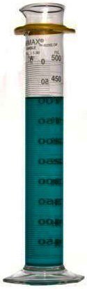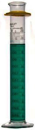 KIMAX Class A cylinder is marked with a reverse metric scale.