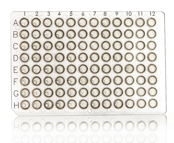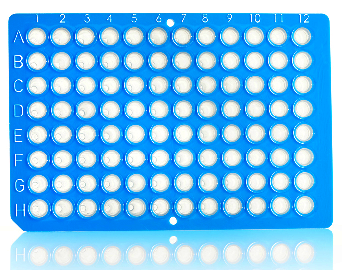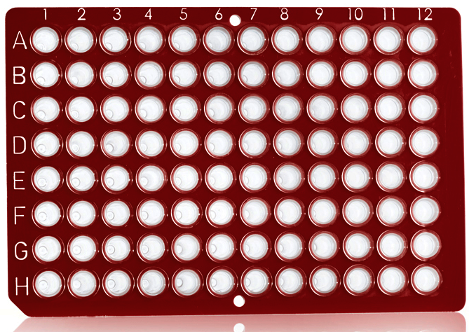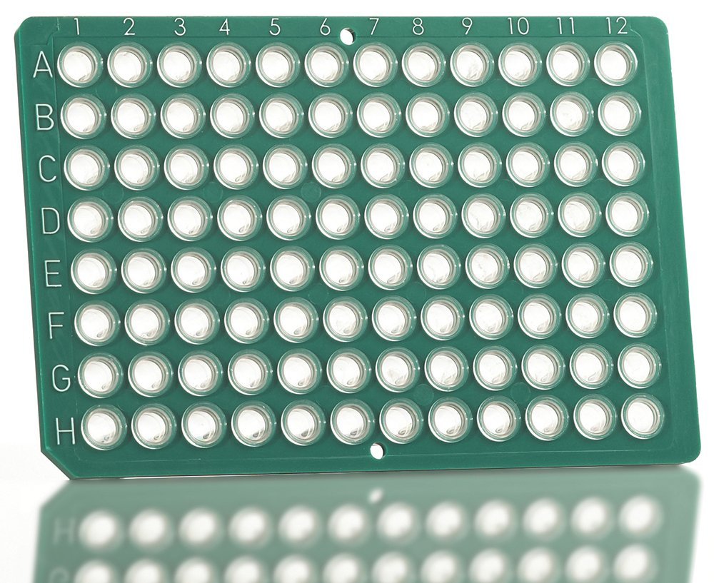 Universal fit to standard 96-well blocks; with 0.25 ml polypropylene wells, a rigid non-skirted polycarbonate frame, and a cut corner at H1
