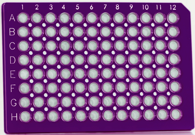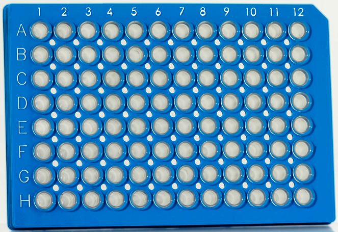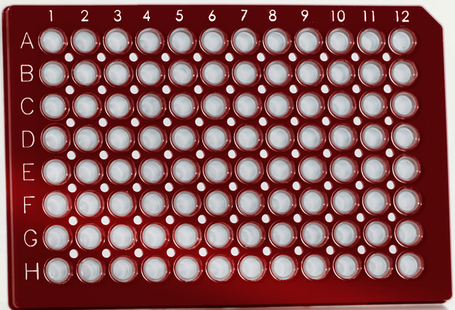Designed for and tested on standard blocks, including ABI® standard blocks; with 0.25 ml polypropylene wells, a rigid semi-skirted polycarbonate frame, and a cut corner at A12.