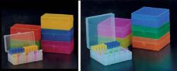 Accomodates all 1.5mL and 2.0mL microtubes and standard 2.0mL cryovials. Designed with raised edges for secure, nonslip stacking. The lid opens and locks easily. Other features include: an attached lid that will not get lost, an alphanumeric matrix, and a frosted writing panel on the front. Available in an all-black version for use with light sensitive specimens.