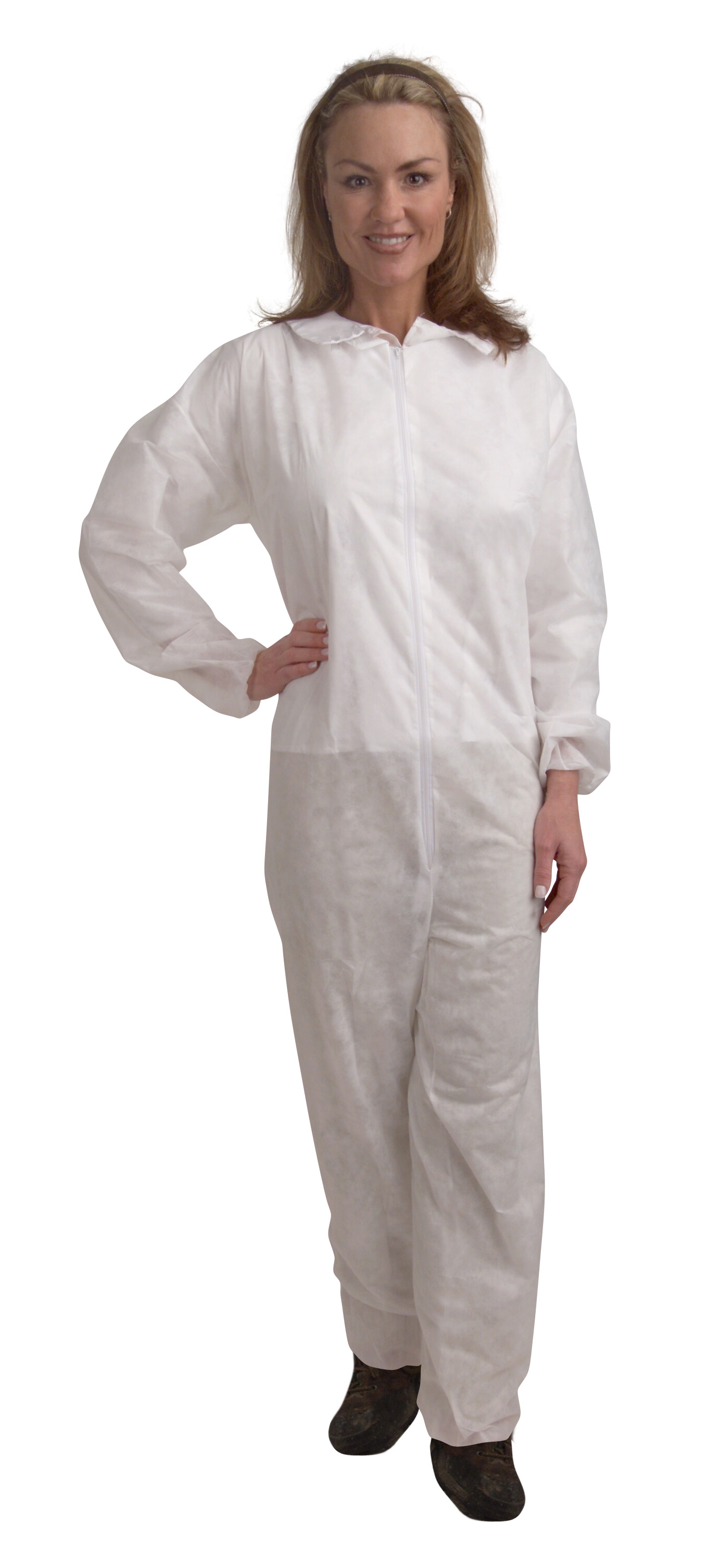 Spunbond polypropylene construction provides protection in work environments where dirt and grime are a problem. The porous construction remains breathabable for added comfort. The roomy sizing with elastic wrists and ankles helps keep contaminants from reaching clothing below.