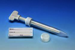 This disposable tissue grinding system incorporates a patented closed system that grinds the specimen in a sealed container, preventing any risk of contact with the sample. The narrow pestle design eliminates the problem of sample overflow common with other systems and the molded-in abrasive surface leaves no sediment to obstruct the sample during examination. The system arrives fully assembled and gamma sterilized. An extra cap and identification label are provided for sample storage or transport. The unique cap design prevents the unit from rolling when placed on the bench. The 35mL grinder is freestanding, allowing easier handling. All sizes are supplied in cases of 10.