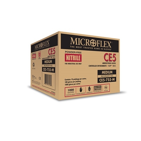 Microflex® CE5-755 Class 100 Nitrile Clean Room Gloves, Powder-Free, 12" Extended Cuff, 3.9 mil, White - 1000/Case, Microflex, GROUP-CE5-755, Material: Nitrile Color: White Powder-Free: Yes Cuff Style: Beaded Cleanroom Class: Class 100/