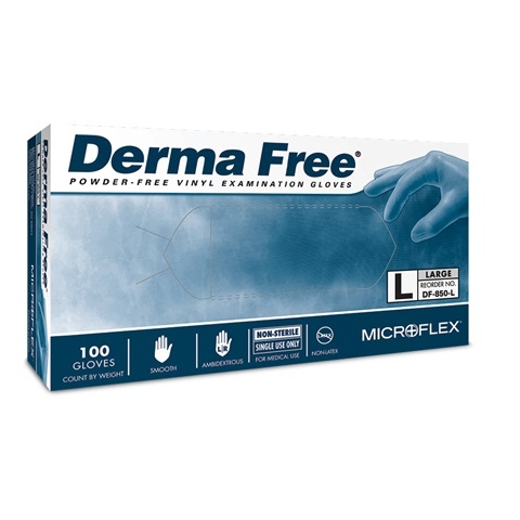 Microflex® DF-850 Derma Free® Vinyl Exam Gloves, Powder-Free, Smooth Grip, 3.9 mil, Clear - 1000/Case, Microflex, GROUP-DF-850, Material: Vinyl Color: Clear Powder-Free: Yes Cuff Style: Beaded AQL: 1.5 Length: 9.25" Standard P